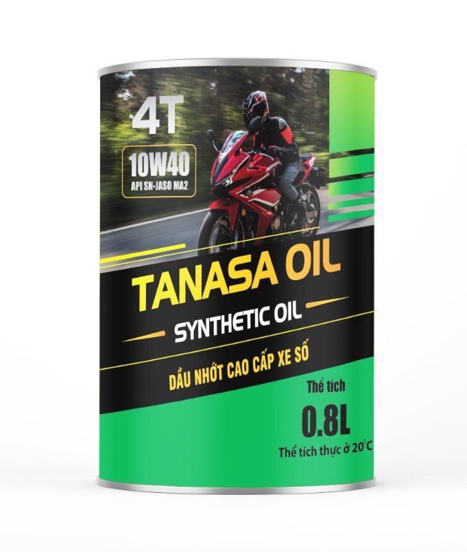 TANASA 4T 10W40 SN được đóng gói trong bao bì lon 800ml, lon 1 lít.